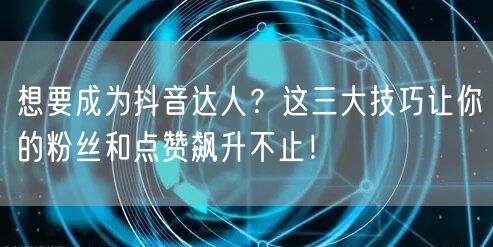 想要成为抖音达人,并非一蹴而就。通过掌握上述三大技巧,并结合自己的实际情况进行实践,你将有机会在抖音平台上脱颖而出,实现粉丝和点赞的飙升。不断努力学习、创新和进步,成为备受瞩目的抖音达人!