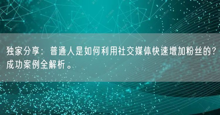 随着互联网的发展,社交媒体已成为人们生活中必不可少的一部分。对于普通人来说,如何在社交媒体上快速增加粉丝,扩大影响力,成为了一个值得探讨的话题。本文将通过成功案例全解析的方式,为大家分享一些实用的方法和技巧。