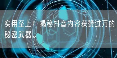 总之,要想在抖音平台上创作出获赞过万的内容,需要了解用户喜好、遵循实用至上的原则、创新内容形式、紧跟热点并注重互动与反馈。掌握这些秘密武器,你将能轻松打造出吸引用户眼球的爆款抖音内容。
