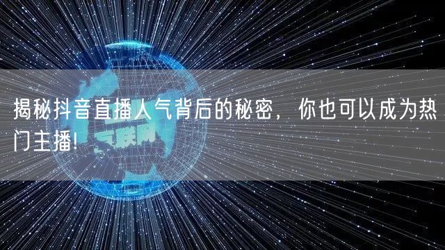 随着互联网的发展,抖音直播已成为大众娱乐的新宠。越来越多的人希望通过抖音直播获得关注,成为热门主播。那么,抖音直播人气背后的秘密是什么呢?本文将为你一一揭秘。
