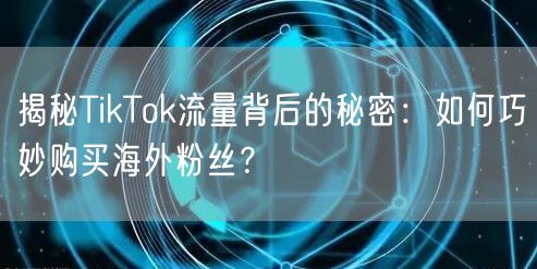 随着TikTok的日益普及,越来越多的用户和商家开始关注其背后的流量秘密。在这个短视频平台上,如何巧妙购买海外粉丝,成为了许多用户关注的焦点。本文将为您揭开TikTok流量背后的秘密,带您了解如何巧妙购买海外粉丝,提升个人或品牌的影响力。